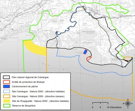 Dans le Golfe de Beauduc, il existe 2 mesures de protection de la biodiversité et de la ressource : une zone de protection de biotope et une réserve naturelle.