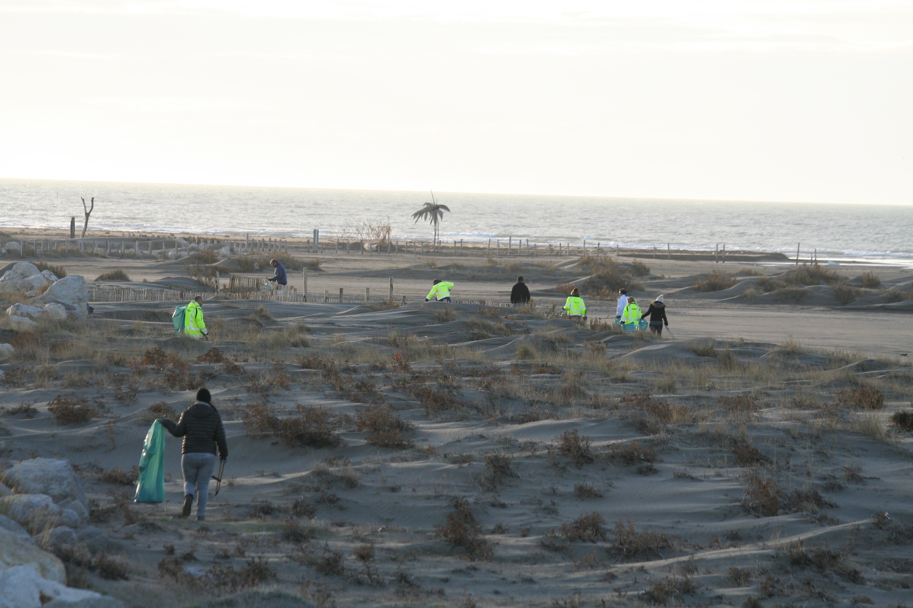Chantier participatif de nettoyage du littoral sur la pointe des Sablons. Le site des Etangs et marais des salins de Camargue, propriété du Conservatoire du Littoral, est gérée conjointement par le Parc de Camargue, la Société nationale de Protection de la Nature et la station biologique de la Tour du Valat. Ce vaste ensemble de lagunes côtières fait l’objet d’une gestion écologique qui contribue à la préservation du delta du Rhône. La sensibilisation à la fragilité des zones humides et à la nécessité de les protéger fait également partie des missions inscrites dans la Charte du Parc de Camargue. Ainsi s’ajoutent aux diverses missions de gestion, des actions de sensibilisation des acteurs/usagers et plus largement du public qui visite le territoire.