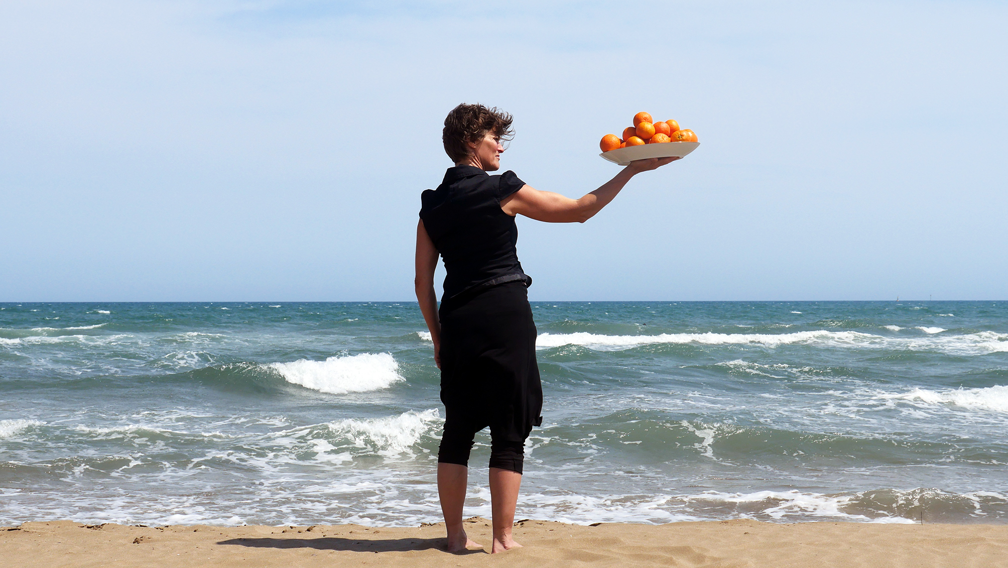 Côté plage, Hélène Dattler, scénographe, danseuse, performeuse, présente « La mer qui monte en moi », un projet qu'elle a réalisé pour le Parc naturel de la Narbonnaise avec les habitants accompagnés par Sylvie Paz, cantautora latina.