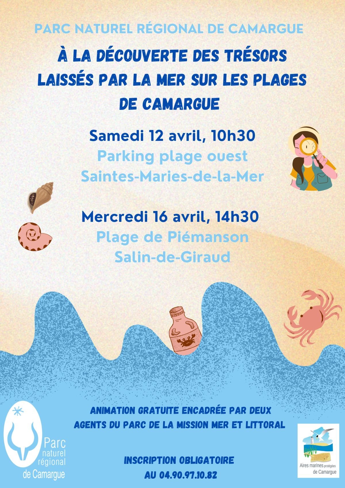Pour apprendre, découvrir et comprendre les indices laissés par les flots, l'équipe du Parc vous donne rendez-vous sur les plages de Camargue :