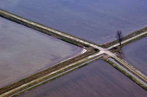 La formation du delta du Rhône et sa perpétuelle évolution au cours des siècles ont façonné un paysage spécifique, caractérisé par l’absence de relief important. Le point culminant du delta se trouve à 4 mètres au-dessus du niveau de la mer, son point le plus bas à 1,5 m en dessous ! Nul obstacle ne gêne la vision de l’espace, et la moindre construction est repérable de loin. La diversité des facteurs naturels (eaux saumâtres, eaux douces, soleil, vent) permet toutefois de distinguer deux grandes zones paysagères : la Camargue fluvio-lacustre et la Camargue laguno-marine.
