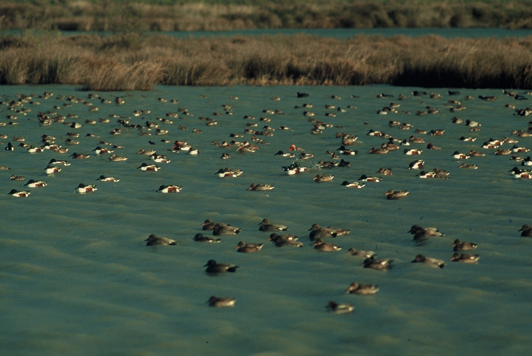 Plusieurs dizaines de milliers de canards (essentiellement sarcelles d’hiver, colverts, pilets et souchets mais aussi milouins et morillons) viennent passer l’hiver en Camargue.