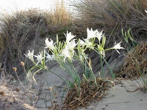 Alors que la canicule estivale brûle les plages, ce lis (Pancratium maritimum) fleurit en retrait, au c½ur des dunes. Sa corolle blanche en tube de plus de 10 cm, éclatante de blancheur, est une merveille. Protégé en Région Sud Provence-Alpes-Côte d’Azur, il est à admirer, à sentir, à photographier bref à respecter.